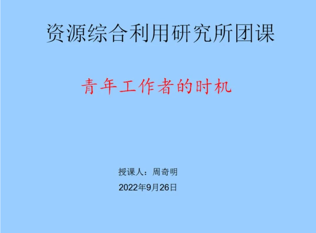 資綜所所長、黨支部書記周奇明認為青年工作者有5個時機:入職中色桂林院是一個時機,加入現(xiàn)在科研團隊一個時機,有了師傅是一個時機,參與項目是一個時機,并詳細分享了每個時機該有的收獲,勉勵青年團員要珍惜機會、把握機會、在實踐中實現(xiàn)自我,勤學、勤問、勤思考、多動手、多體會、多總結(jié),把青春的精力融入團隊。