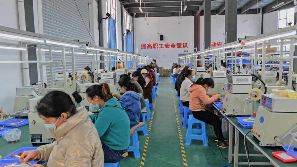 聚緣村是梁河縣農戶來源最廣泛、建檔立卡戶占比最高的易地搬遷新村,安置了全縣9個鄉鎮易地搬遷群眾190戶768人,建檔立卡戶占比73%。習近平總書記強調:“樂業才能安居,解決好就業問題,才能確保搬遷群眾穩得住、逐步能致富,防止返貧。”為擴展聚緣村搬遷群眾的收入來源,中國有色集團投資265萬元幫扶扶貧車間一座,引入電子器件裝配加工企業和農業公司,投入資金對車間脫貧員工進行上崗培訓,實現了搬遷勞動力家門口就業。楊國敏已連續多月蟬聯生產效率榜榜首,工資每月最高可以拿到4千多,她一邊熟練地組裝著手里的器件,一邊說道:“在搬遷之前我就發愁以后要怎么謀生,沒想到幫扶單位中國有色集團早為我們謀劃好了工作問題,通過參加組織的培訓,提高了技能熟練度,在家門口從農民變成了藍領工人,現在車間的員工人均每月都能拿到3000多的工資。”