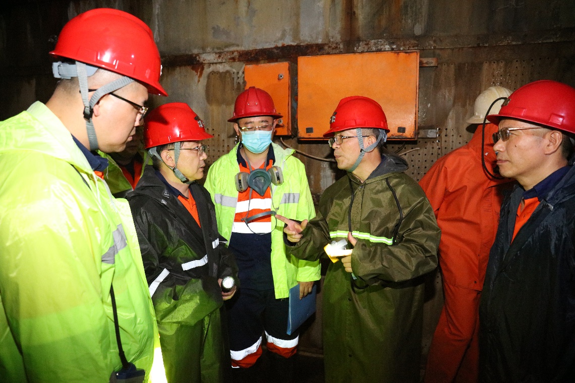 在中色非礦東南礦體井下現(xiàn)場查看副井井筒涌水情況及安全管理情況