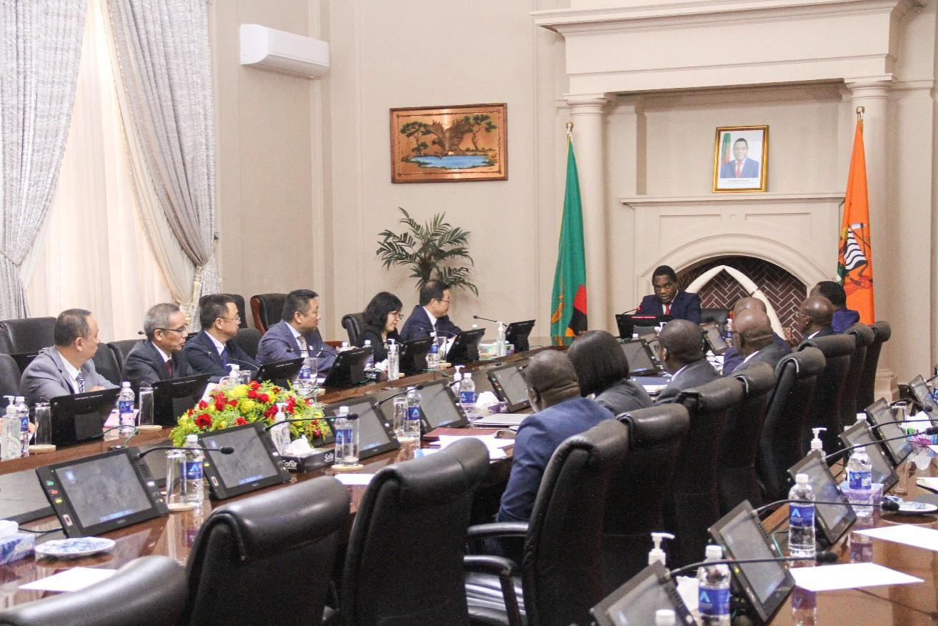 文崗拜會(huì)贊比亞總統(tǒng)哈凱恩德·希奇萊馬