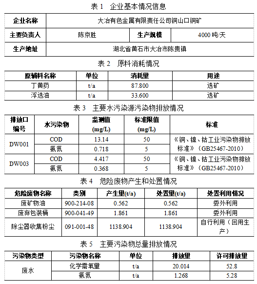 大冶有色金屬有限責任公司銅山口銅礦清潔生產審核信息公告