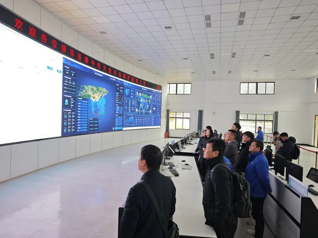 同日,調研組前往豐山銅礦,參觀了智能化管控中心。該礦負責人詳細介紹了數字化礦山建設的整體規劃與進展,特別是在應用中國恩菲的“MIM+數字一體化解決方案”后,礦區實現了從礦石開采、處理到運輸、管理的全鏈條智能化。調研組對豐山銅礦在智能化建設和安全環保管理方面的成績表示充分肯定,并就平臺功能優化、數據互聯互通等方面提出了指導性建議。