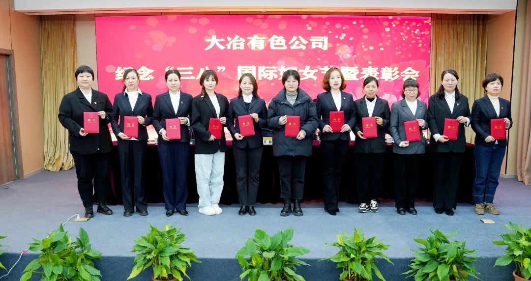 在紀念“三八”國際婦女節表彰會上,與會人員學習了習近平總書記關于婦女工作、關于注重家庭家教家風建設的重要論述。表彰了2024年度公司10名三八紅旗手,她們是冶煉廠愛崗敬業的“鐵娘子”陳小梅、弘盛銅業數據田里的“耕耘者”付茵、銅綠山礦礦山科技的“靈巧手”李巧雙、銅山口礦智能礦山的“追夢人”徐慧婷、豐山銅礦綻放礦山的“巾幗花”趙建華、公司生產技術部生產經營的“定盤星”于冰新、金格公司善思篤行的“水司令”黃丹霞、大冶國貿合規保值的“護航員”方陽、設研公司科技創新的“小帥才”胡曉帥、公司人力資源服務中心改革攻堅的“急先鋒”翟龍華。與會人員觀看了三八紅旗手先進事跡宣傳片。